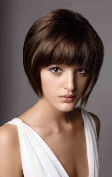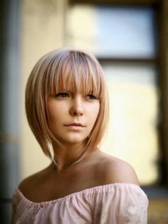 Стрижку можна виконувати у різних варіаціях. Вона може бути дуже короткою або злегка подовженою. Головне, вибирати довжину до плечей і відмовитися від чубчика з прямим проділом. Каре з чубчиком – ідеальна зачіска для жінок з худорлявим обличчям.