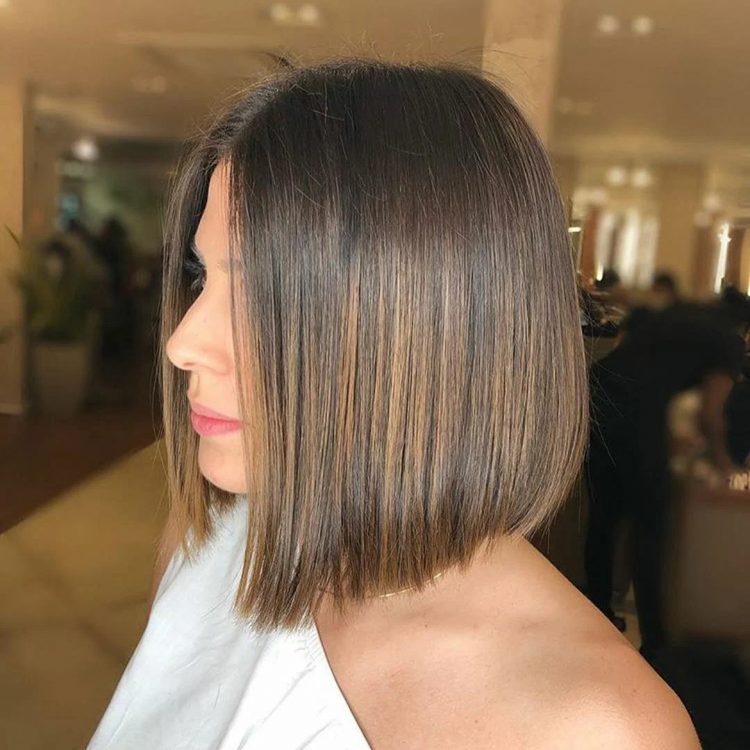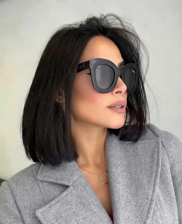 Каре-боб у гладкому виконанні з косим проділом – ще один вдалий варіант для тих, хто мріє у дзеркалі бачити красиве, доглянуте волосся.