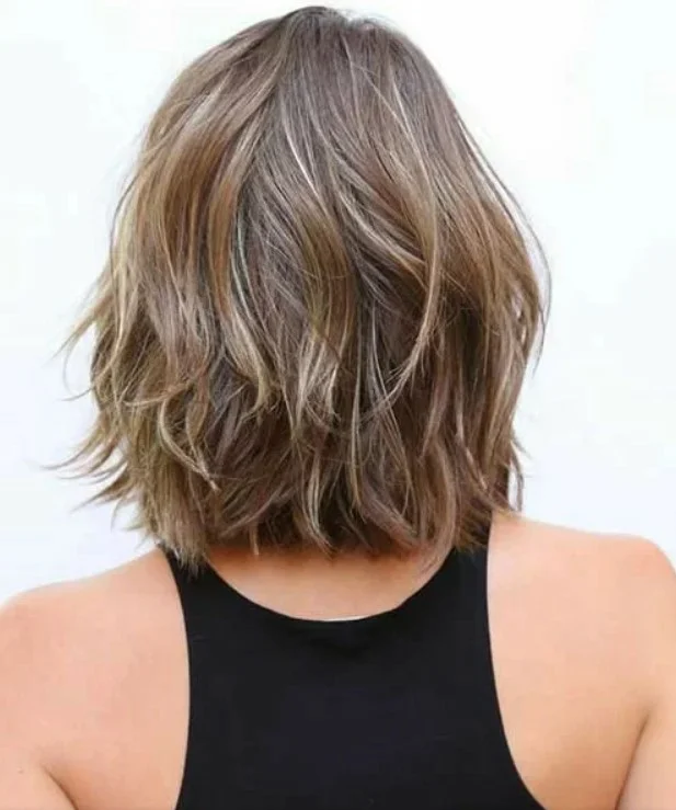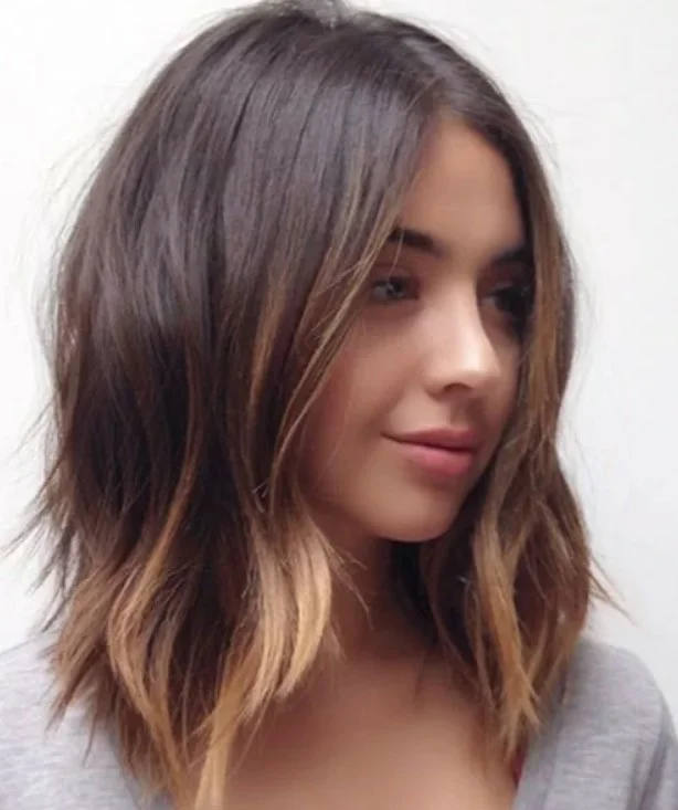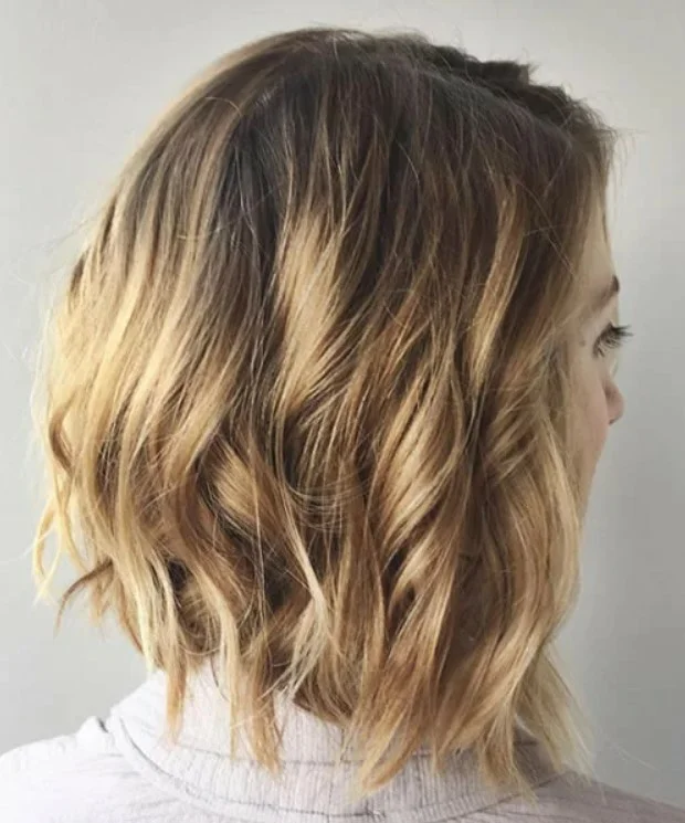 Середня стрижка з легкою “драбинкою” біля обличчя. Рвана текстура робить локони легшими, тому не вимагає тривалої укладки. Природний вигляд – краще, що можна придумати для цієї стрижки. Якщо зробити пляжну хвилю, зачіска отримає ще життєрадісніший характер.