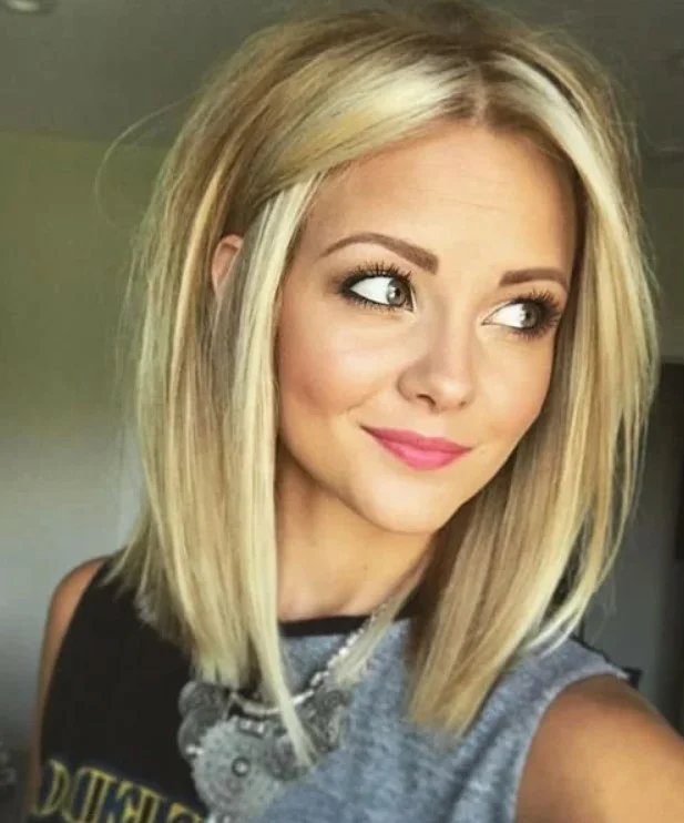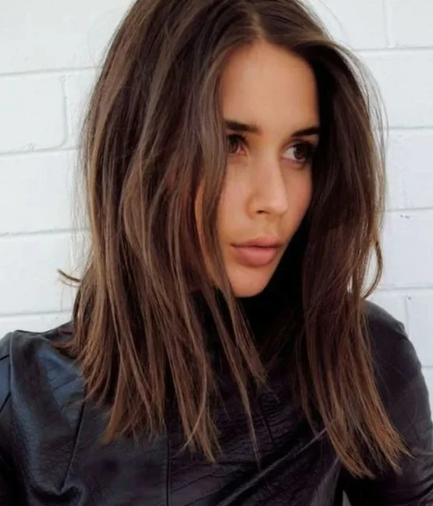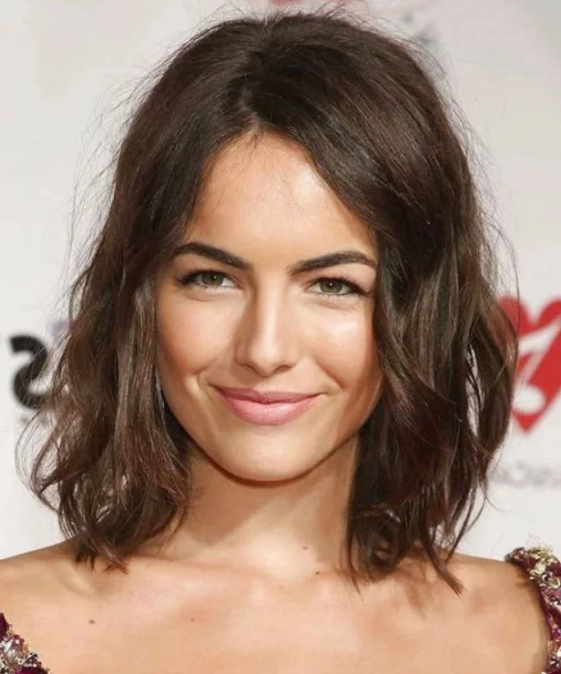 Густе волосся середньої довжини з боковим проділом. Цей довгий лоб з делікатно-укороченою потилицею виглядає приголомшливо в будь-якому укладанні. Щоб створити ніжний, романтичний і при цьому простий образ, зробіть легкі хвилі і глибокий проділ, так волосся ляже на одну сторону і стане об’ємнішим на вигляд.