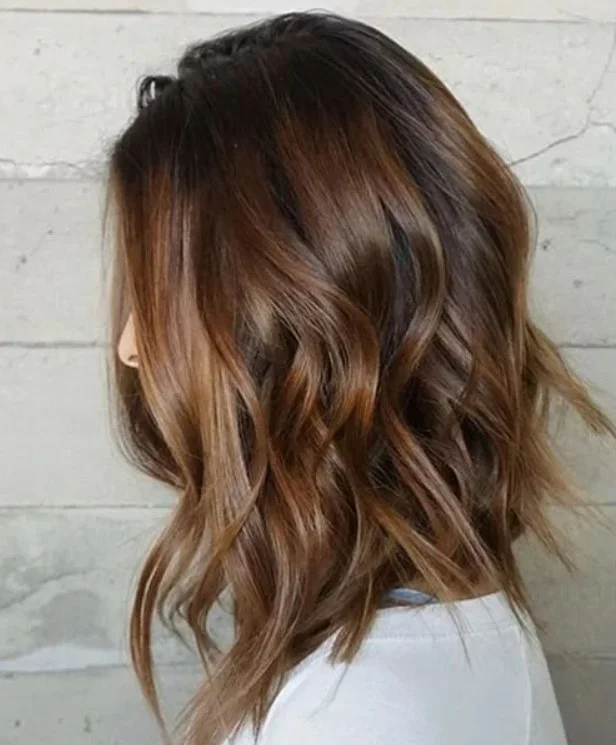 Середня хвиляста стрижка з довгим чубчиком-шторкою. Ідеально підходить жінкам з круглим обличчям і гарненькими рисами. Романтична і легка стрижка, яка при бажанні трансформується в зібрану зачіску будь-якого плану.