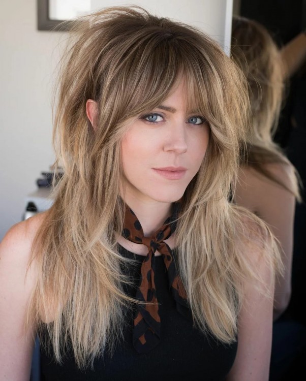 Дана стрижка просто ідеально виглядає на середньому і довгому світлому волоссі. Завдяки особливій техніці локони лежать злегка недбало і виглядають ніби тільки що після сушки феном. Шеггі додає образу легкості і неймовірної романтичності. Текстуровані завиті локони ідеально доповнюються тонуванням або меліруванням. Природні переходи, органічна розтяжка відтінку і гармонійна глибина кольору – всі ці переваги фарбування в блонд по-новому заграють в тандемі зі стрижкою шеггі.