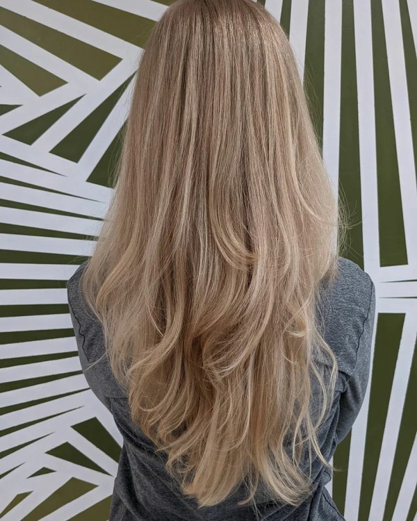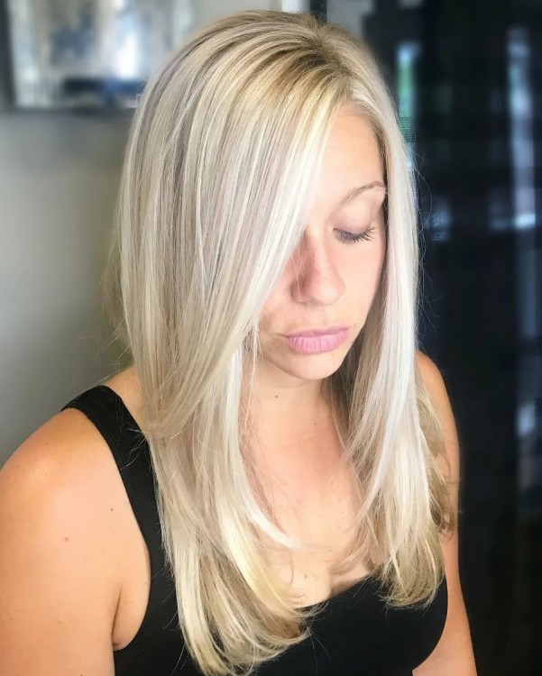 Ще один варіант стрижки на довге волосся, який бездоганно виглядає з блондом. Структура каскадної стрижки дозволяє світлим відтінкам по-новому заграти на волоссі і дати візуальний об’єм і глибину на ваших локонах. Прекрасно виглядають в поєднанні з каскадом теплі відтінки блонду: