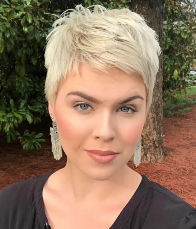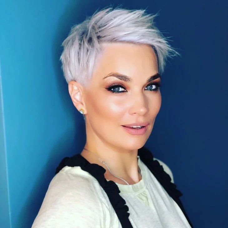 Ультракоротку стрижку сміливо можуть вибирати жінки з круглим обличчям або дрібними рисами. Вона візуально звузить високий лоб, наголосить на красі очей.