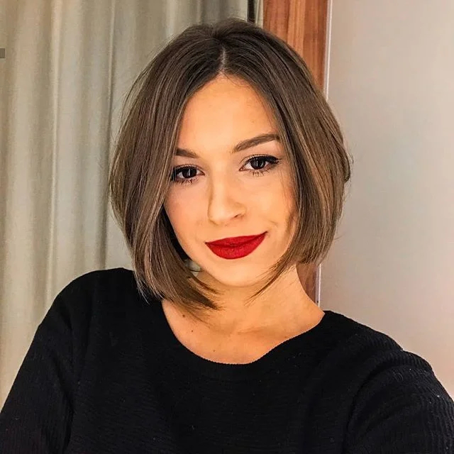 Жінкам з повним обличчям ідеально підходить стрижка з чубком на два проділи. За рахунок цього візуально подовжується овал обличчя, красиво підкреслюються вилиці і форма очей.