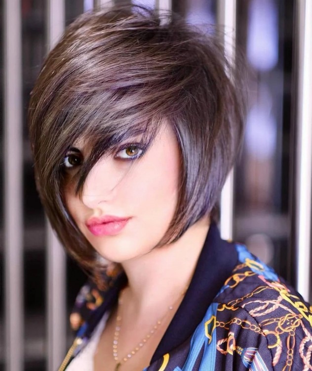 Також власницям прямого і тонкого волосся можна розглянути градуйоване каре з чубчиком. Стрижка виглядає трохи химерно але, незважаючи на це, створює дуже елегантний і жіночний імідж.