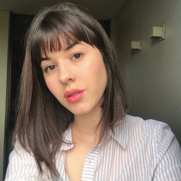 Лаконічний і стильний образ з подовженим каре не буде позбавлений привабливості, але для цього потрібен модний прямий чубчик до брів. Завдяки чубку ви зможете додати своєму зовнішньому вигляду трішки загадковості, при цьому за рахунок форми стрижки прямі локони будуть виглядати розкішно і доглянуто.
