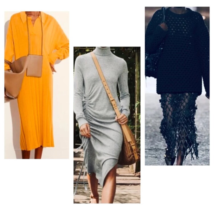 Найтеплішим і найзатишнішим трендом серед суконь поточного року стануть трикотажні сукні. Оптимально вибирати вироби напівприталених силуетів довжини міді. Також підійдуть і оверсайз моделі.