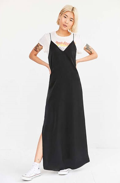 По суті, витончені сукні в білизняному стилі нікуди і не зникали, просто кожного року ми носимо їх по-різному. У цьому сезоні поєднуйте їх з об’ємними жакетами. Пограйте з моделями взуття: до таких нарядів підійдуть сандалі на грубому каблуці або на платформі. В якості прикраси можна додати багатошаровий ланцюжок. Ще один варіант, як носити «комбінацію», – поєднувати її зі звичайною білою футболкою і кедами.