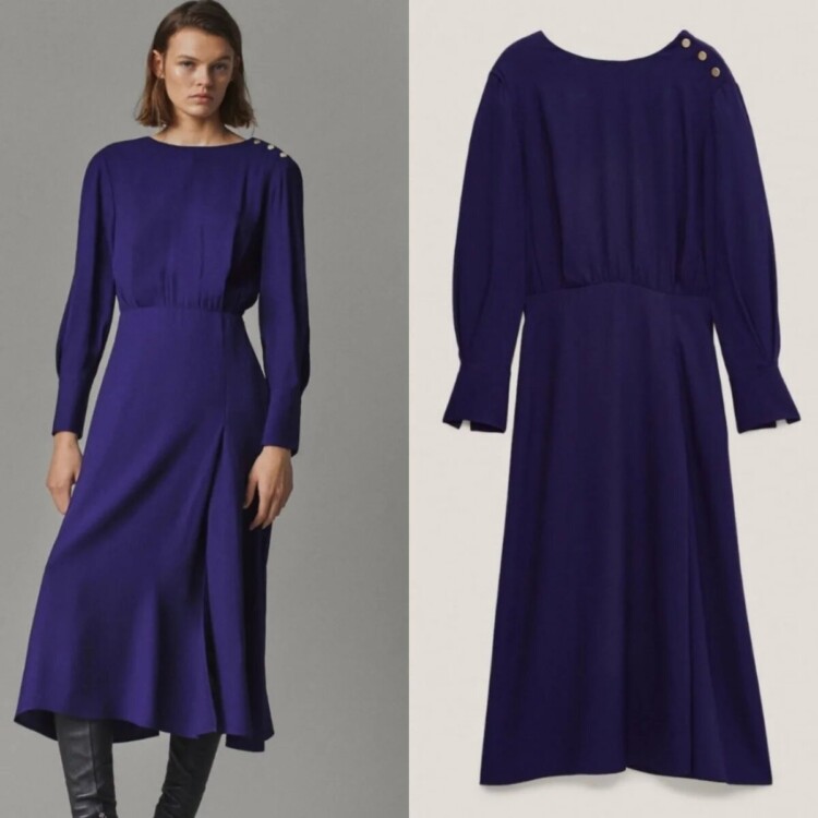 Ця сукня вже більш універсальна та підлаштується майже під будь-яку річ. Можна одягнути жакет, а поверх ще й пальто накинути – вийде дуже стильний багатошаровий образ. Ремінь додавати не обов’язково, все залежить від інших деталей і вашого настрою. Подобається колір! Не занадто яскравий, але при цьому запам’ятовується.