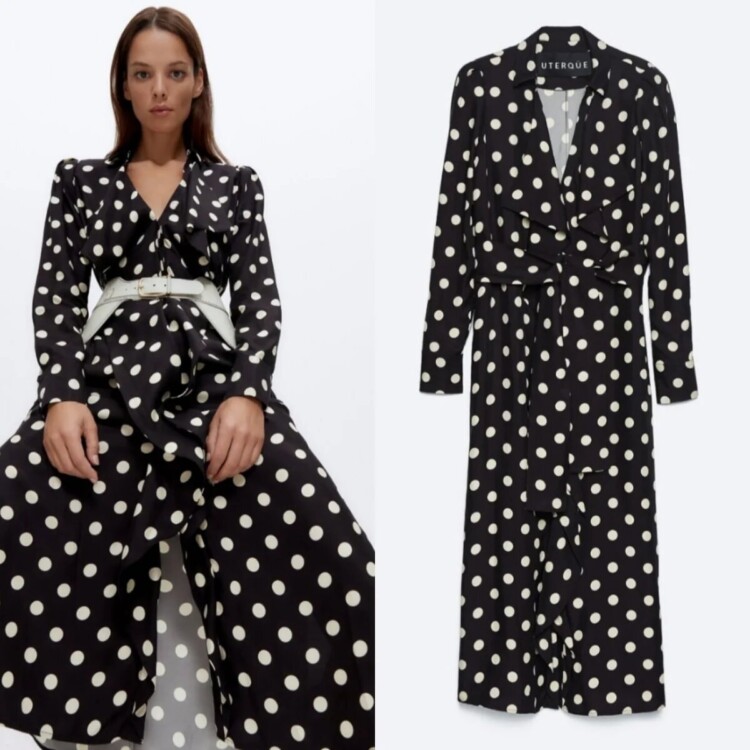 Більш жіночний і романтичний варіант сукні. Можна розбавити образ маскулінними речами, щоб не було too much жіночності. Універсальна модель на всі випадки життя, та ще й в горошок. Ми переконані, що такі сукні будуть актуальниим ще кілька сезонів точно!