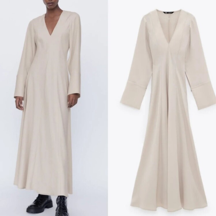 Більшість жінок обирає сукні-міді, обходячи стороною довжину максі. Але це абсолютно невиправдано! Пропонуємо вам звернути увагу на мінімалістичну сукню-максі та додати до неї масивні черевики, короткий пуховик або ж, навпаки, довге пальто! Ви будете виглядати просто приголомшливо і виділятися серед інших людей. А сукня, представлена на фото нижче – як один з варіантів.