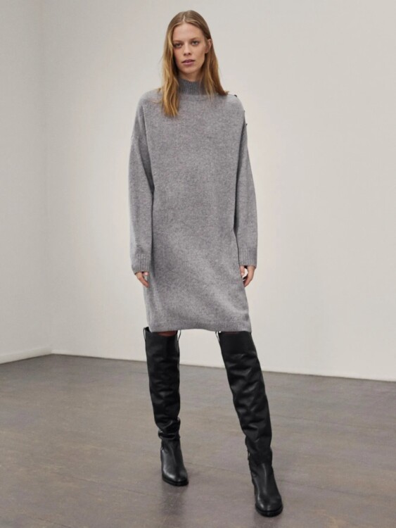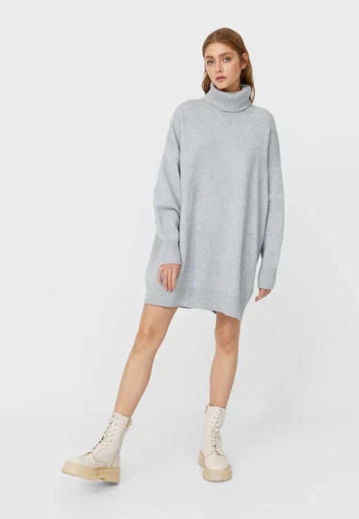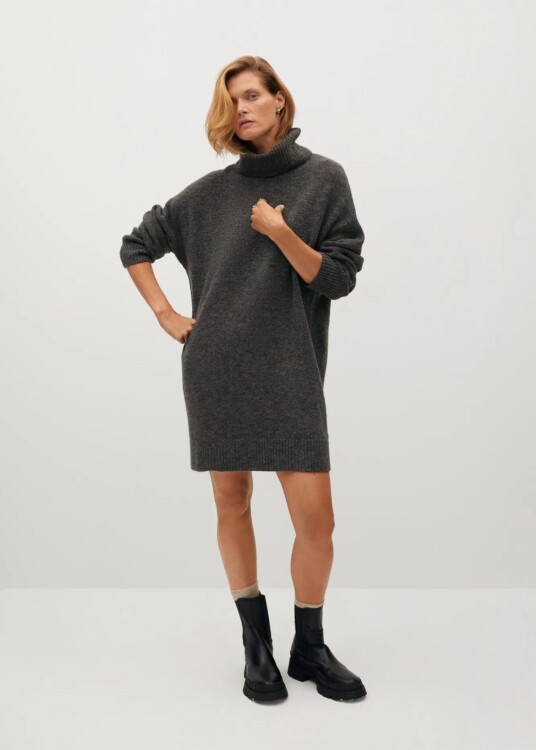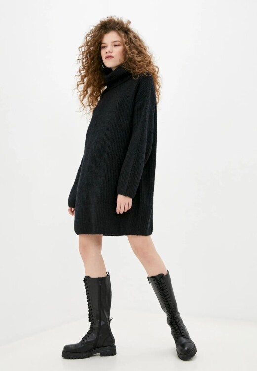Об’ємні, теплі сукні-светри – чудовий варіант для зимових виходів. Зверніть особливу увагу на моделі з високим коміром – вони захистять шию від продування, а також візуально витягнуть силует вгору. Такі сукні гармонійно виглядають з взуттям на низькому ходу, особливо ефектно сюди впишуться черевики на грубій підошві або брутальні ботфорти. Доповнюйте образ стильною панамою і накидають зверху довге вовняне пальто або шубу «тедді» – ваш зимовий образ готовий.