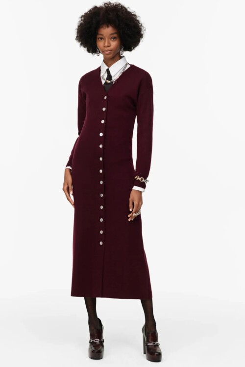 Незвичайний варіант – трикотажна сукня на ґудзиках. Найбільш ефектно вона виглядає в парі зі строгою білою сорочкою. Якщо ви хочете трішки ускладнити образ і зробити його візуально більш зухвалим, пограйте з аксесуарами – цьому поєднанню точно не завадить парочка грубих деталей. Краватка і масивні ланцюги – ідеальне завершення такої незвичайної комбінації.