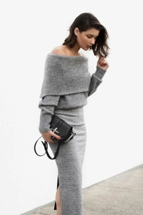 На перший погляд здається, що така сукня взагалі не підходить для зими. Однак її можна дуже вдало поєднати з в’язаним кардиганом або жакетом. Віддайте перевагу білому або чорному кольору.
