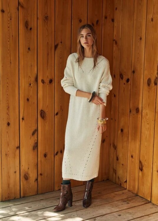 Модель вибираємо вільну. Вона допоможе приховати невеликі недоліки фігури. Сукні-міні носимо зі щільними колготками і чобітьми. Моделі максі носимо з масивними черевиками і пальто.