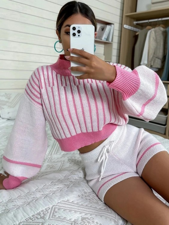 Трикотажні і в’язані комплекти захопили світ моди і це зовсім не жарт. У холодному сезоні 2021/22 очікується поява величезної кількості найрізноманітніших теплих комплектів, що складаються з найнесподіваніших поєднань. Наприклад, светр + шорти, сукня + кардиган і т.д.