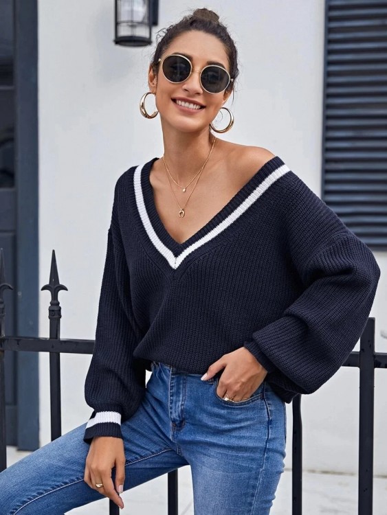 Стильний светр з V-подібним вирізом має безліч переваг перед іншими моделями – V-подібний виріз візуально подовжує лінію шиї, роблячи основний акцент на зоні декольте і бюсту. Насправді така модель називається пуловером і є одним з різновидів джемпера.