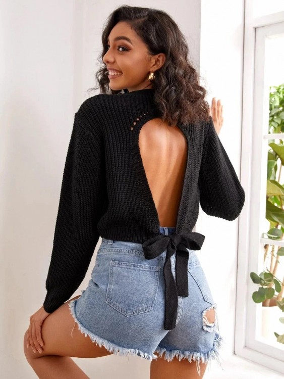 Светри з відкритою спиною – це, безумовно, стильно, модно і жіночно, але подібні моделі не є універсальним і практичними. Проте, вони користуються популярністю ранньої осені серед любительок романтичного стилю.