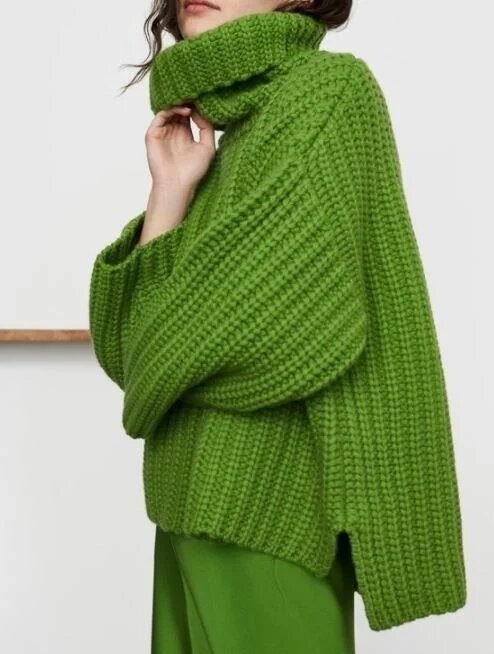 У светрі, зв’язаному величезними кісками, є щось таке, що змушує жінку виглядати романтично і елегантно. Цей светр в стилі 80-х знову повертається на модний Олімп. Він дуже гарно виглядає з вечірньою спідницею або брюками-дудочками. Чоботи зі зморщеною халявою і об’ємною короткою шубкою подвоять очки цінителів виразного вигляду.