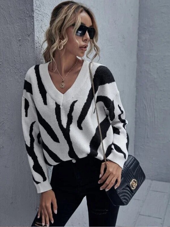 Найбільш трендовими малюнками на светрах, стали геометричні варіанти, гусяча лапка і моделі з анімалістичними принтами, такими як зебра, леопард і коров’ячий принт.