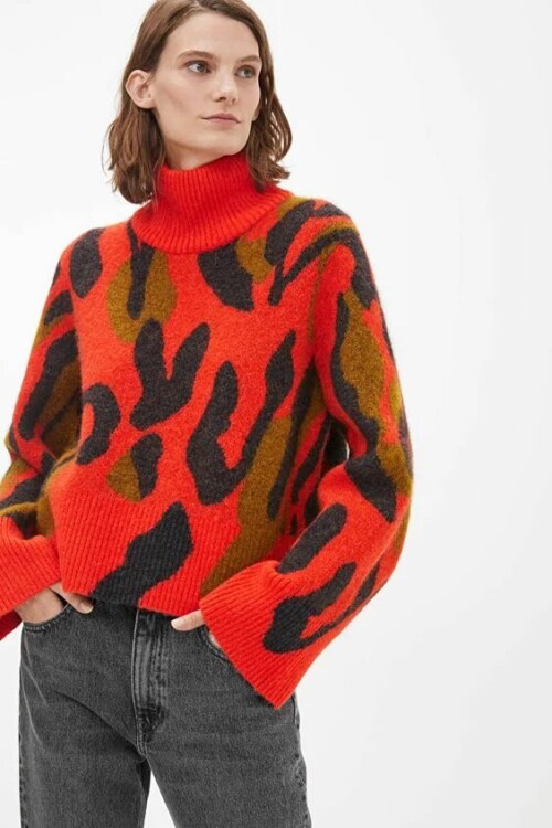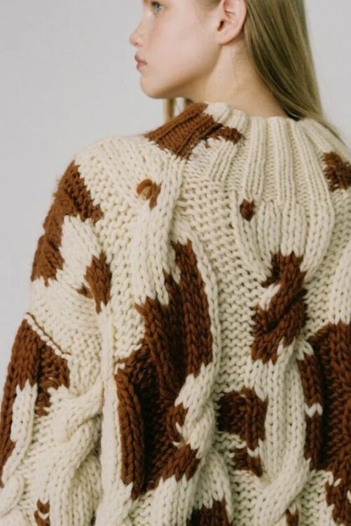 Такі малюнки однаково добре виглядають як на вільних моделях оверсайз так і на укорочених светрах. І вони неймовірно стильно виглядають з однотонними брюками або спідницями, які за кольором поєднуються з одним з малюнків принта.