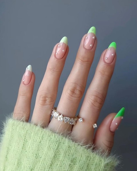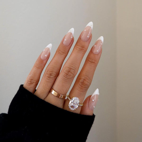 Стрази на нігтях виглядають, звісно, дуже круто, але іноді стільки блиску здається too much. Якщо вам подобаються ніжніші манікюри, то стрази у вигляді перлів ідеально вам підійдуть. Вони прикрасять і короткі нігті, і довгі. Будуть круто виглядати і в однотонному манікюрі, і в модному дизайні нігтів.