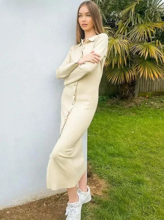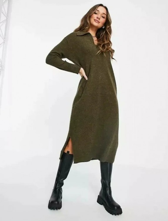 На трикотажній сукні також може бути присутнім і комір, ідентичний тому, що характерний для футболок-поло. Під таку модель, до речі, можна одягнути лаконічну водолазку, якщо боїтеся замерзнути.