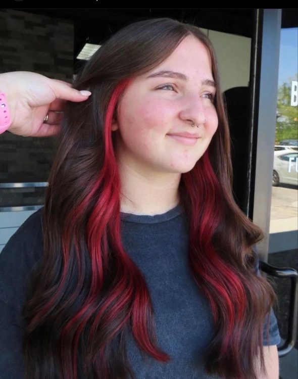 Тренд на кольорові пасма вже не перший сезон залишається популярним. Сині, фіолетові, рожеві та червоні відтінки переконливо яскраво виглядають на жінках з темним волоссям.