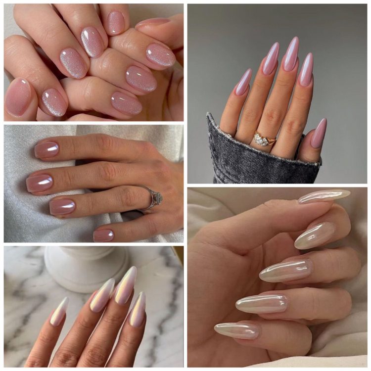 Тренд на хромовані та перламутрові нігті з’явився ще у 2022 році, але популярний він ще й досі. Тому, щоб бути наймоднішою цього сезону, достатньо лише зробити манікюр з красивим дзеркальним фінішом. Домогтися його можна за допомогою перлинного втирання, топу або спеціальної плівки. Також варто придивитися до гель-лаку котяче око в нюдових відтінках.