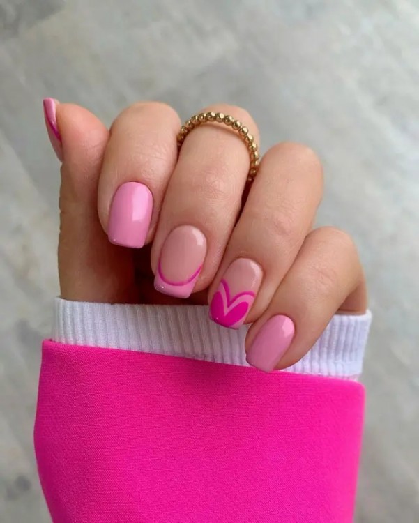 Якщо ми згадаємо про жіночність, то перше, що спадає на думку — це рожевий колір. Пальто, блуза або манікюр такого відтінку виглядають дуже мило, до того ж завжди виділять вас у натовпі. Для весняних днів та зустрічі з першими теплими днями рожевий стане ідеальним манікюром. Ви зможете одягнути сукню, відправитися гуляти в сквер вдихаючи аромат перших квітів, а манікюр підкреслить вашу жіночність та романтичний настрій. Відтінок рожевого манікюру може бути різним. Якщо ви не хочете яскравих фарб, можете використовувати блідий лак і все одно виглядати приголомшливо.
