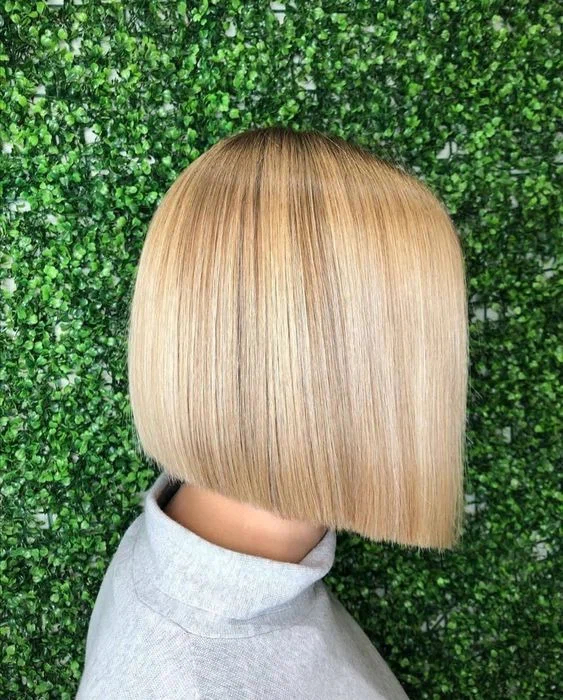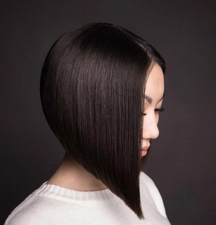 Асиметрія розкішно підходить стрижці боб. Подовжені передні пасма біля обличчя додають зовнішності особливого шарму та вишуканості. Охайне рівне волосся привертає до себе увагу, а особливо, якщо воно має неймовірний прикореневий об’єм.