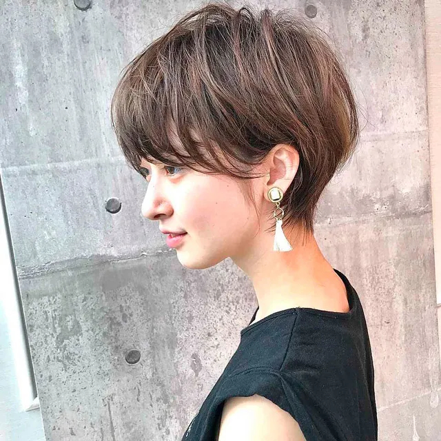 Розпатлана зачіска піксі боб, що повністю приховує лоб