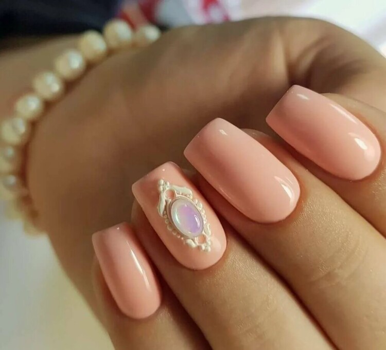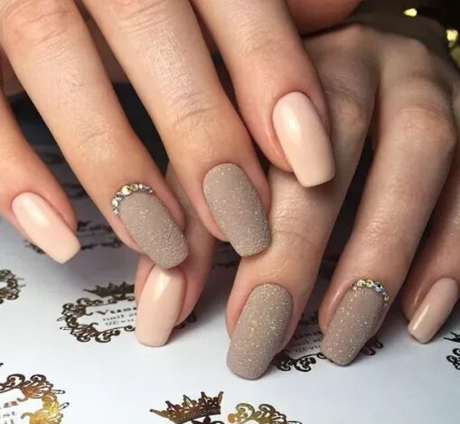 Даний відтінок нюдової палітри неймовірно ефектно виглядає навіть в однотонному виконанні, особливо з матовим покриттям. М’який “пісочний”, що розбурхує уяву, також гарно виглядає в компанії з блискітками та іншими декоративними вишукуваннями.