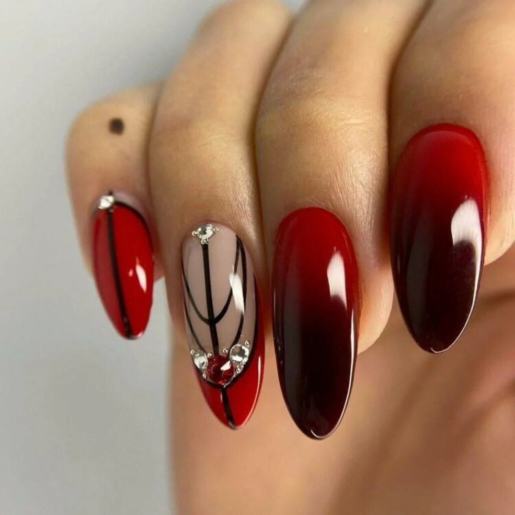 Серед найбільш оптимальних дизайнів для нігтів особливе місце займає варіант з ефектом омбре. Він виглядає розкішно і досить сміливо.