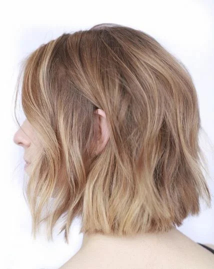 Натурально-русявий блонд з легкими світлими акцентами дуже пасує цьому легкому стильному бобу.