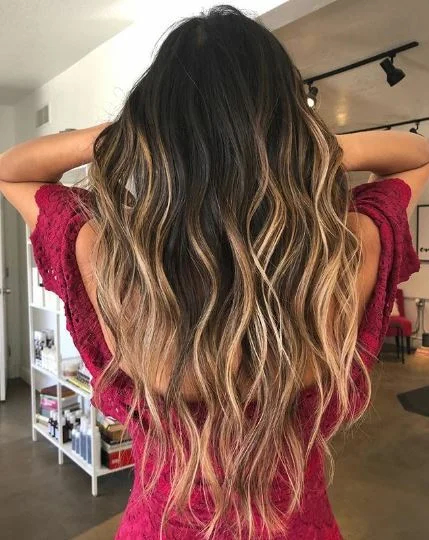 Акуратний м’який балаяж з натуральним корінням і тонким “штрихуванням” біля корінців – чудовий варіант для тих, хто хоче стати світлішими.