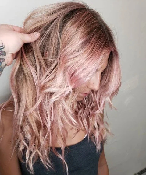 Рожеві відтінки теж, як і раніше, в моді але вони стали ніжнішими, акварельнішими, тоншими. З золотистими пасмами поєднується чудово.