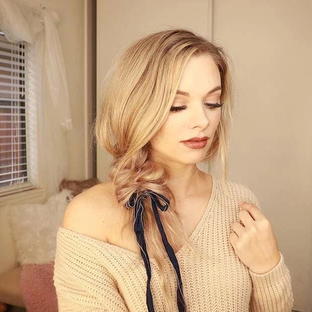Ця зачіска виглядає стильно та легко робиться. Вона може бути виконана з використанням стрічки або гумки, так і без них.