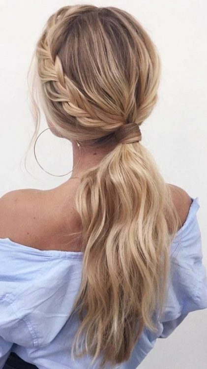 Низький хвіст – це ще один класичний варіант зачіски на літо. Він може бути виконаний як зі стрічкою або гумкою, так і без них, з використанням невидимок та шпильок. Він може бути як об’ємним, так і гладким. Як варіант він може переходити з кіс, сплетених з боків або по центру.