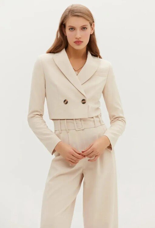 Ще один хіт сезону – укорочений жакет. У парі з брюками, джинсами, спідницею на високій талії він вдало скорегує фігуру: візуально подовжить ноги, зробить пропорції тіла більш гармонійними і витягне силует. Вибирайте короткий жакет з довгими рукавами, жорсткими плечима і прямим кроєм – такі моделі є найбільш актуальними. В офіс пропонуємо носити його з водолазкою та брюками-бананами, на побачення – з невагомою шовковою лузою і твідовою спідницею, в повсякденному житті – поверх базового джемпера або футболки з джинсами слоучами і взуттям на підборах.