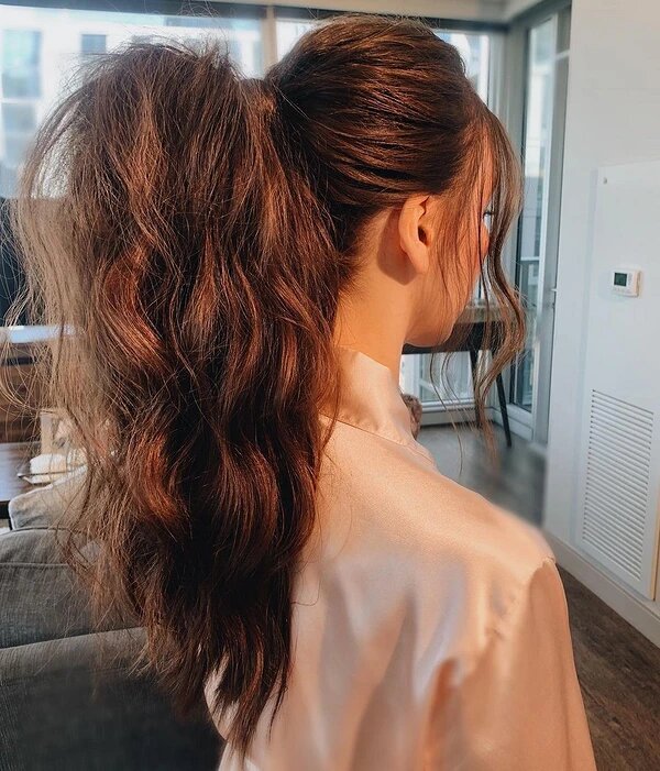 І ще один хвіст, але на цей раз кінський (або просто високий, якщо так вам більше подобається). Ця зачіска сексуальна і жіночна, так що чоловіки від неї дійсно сходять з розуму. Якщо планується більш агресивний образ, потрібно як слід пригладити волосся гелем, а сам хвіст вирівняти праскою. А якщо хочеться легкості, використовуйте нашу картинку в якості референсу.