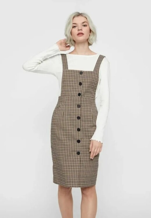 Сарафани – не забуватимемо і про цей варіант. Моделі в клітинку – ідеальне рішення для зими. Носити їх можна з водолазками, блузками і футболками.