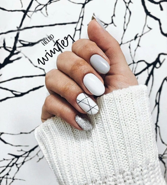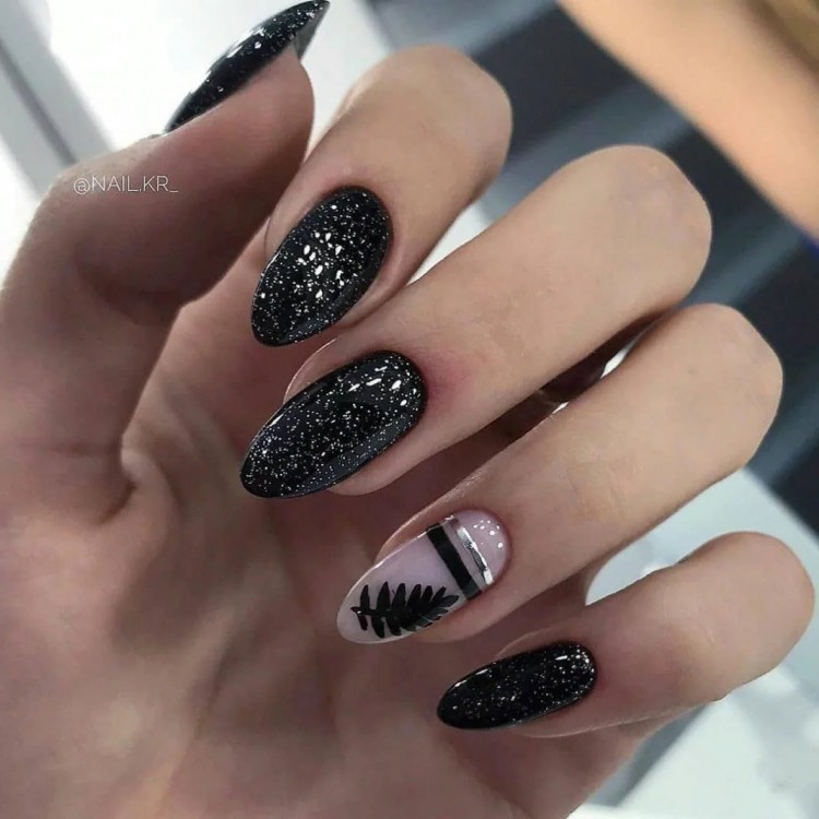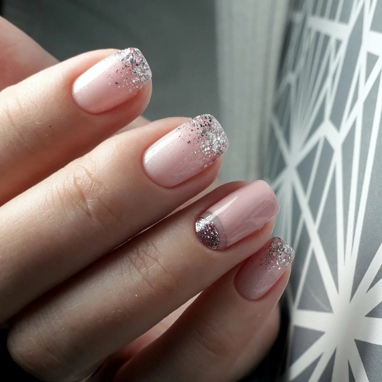 Актуально виглядатимуть блискітки як на 1-2 нігтях, так і на всіх 10. Тим, хто віддає перевагу мінімалізму, наносити їх можна не на всю поверхню, а точково.