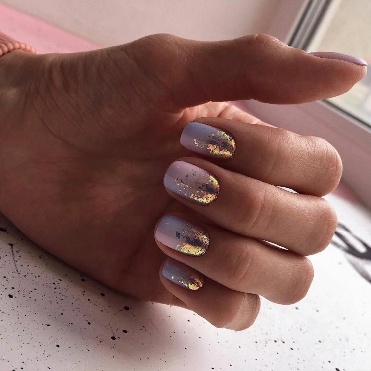 Стриманий блиск і вишуканість додасть нігтикам такий популярний уже кілька років елемент декору, як фольга. Вона чудово поєднується з різними техніками та прикрасами: