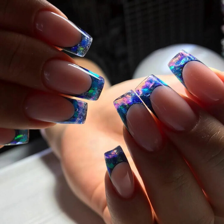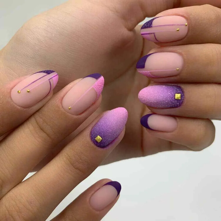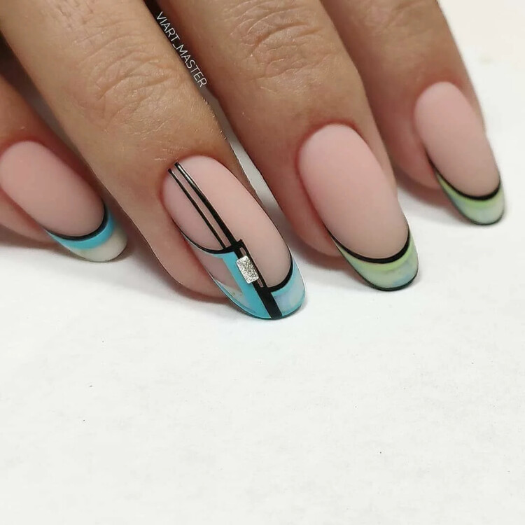 Особливу популярність в 2021 році здобув френч з незакінченою лінією. Дуже ефектно виглядають варіанти в матовому виконанні. Можна також створити плавний перехід від одного відтінку до іншого. Блискітки в вашому розпорядженні. Також край нігтиків можна зробити прозорим. Виглядати буде цікаво і незвично.