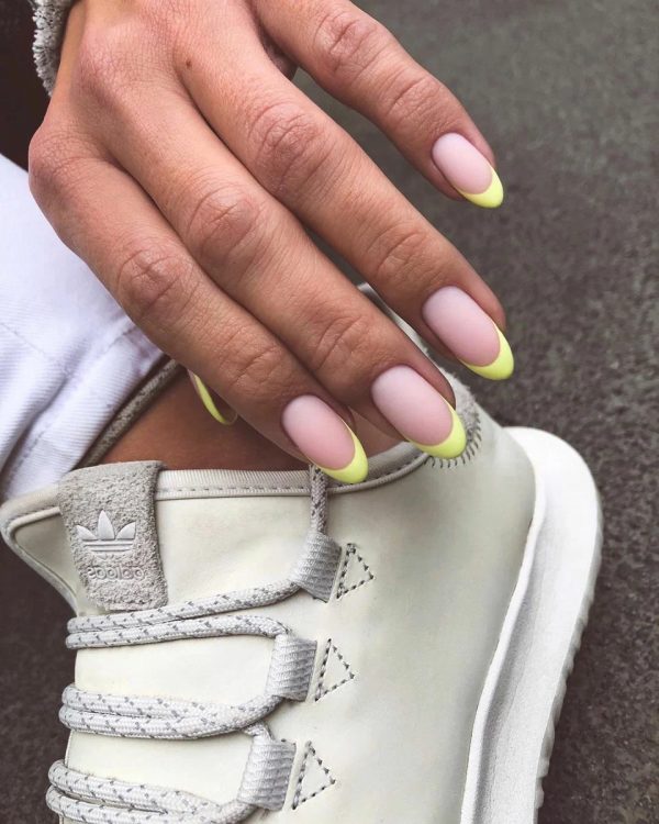 Яскравий французький манікюр із матовим фінішом також можна віднести до тренду.