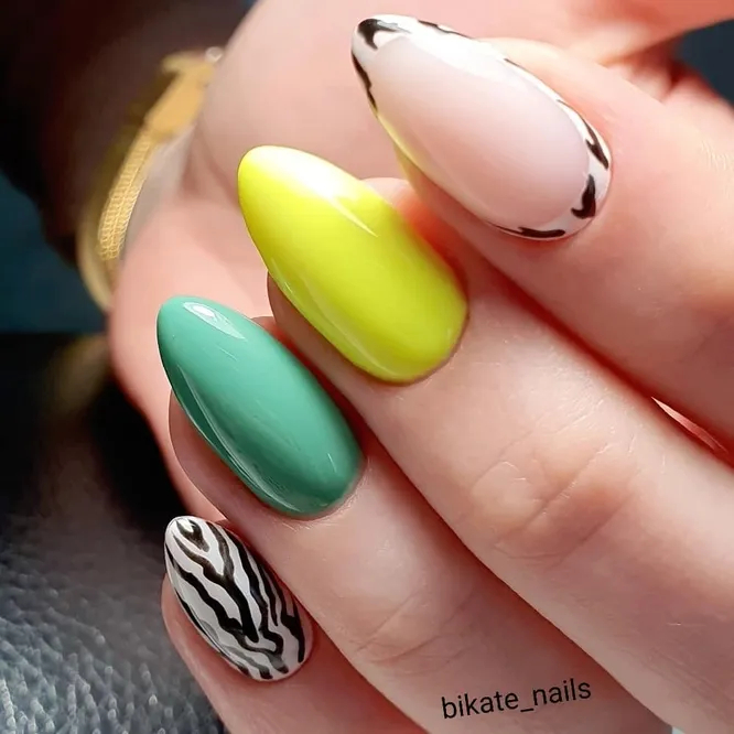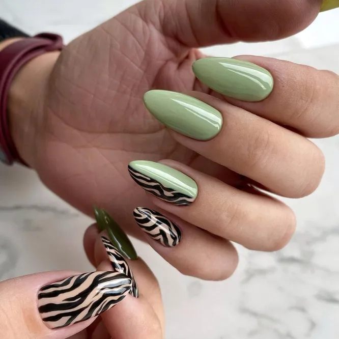 2022 рік, рік Тигра, відродив моду на манікюр з тваринними принтами. І експериментувати на цьому полі можна так, як тільки вашій душі завгодно. Можна зробити анімалістичний френч або виділити один нігтик, можна додати блискіток або намалювати хижі плями лише на половині нігтя. Загалом, якщо полюєте за гарячими трендами, обов’язково спробуйте цей дизайн!