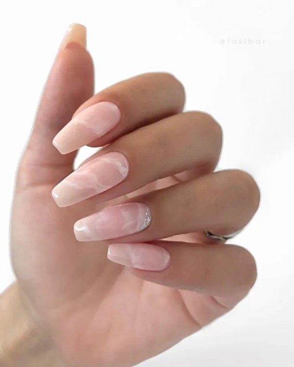 Цей манікюр завоював любов усіх новоспечених наречених – причому саме своєю здатністю прикрасити будь-яку форму нігтів. Рекомендуємо вибирати його всім шанувальницям нюду, адже кварц виглядає не менш делікатно. Але, при цьому, набагато цікавіше, ніж однотонне покриття.