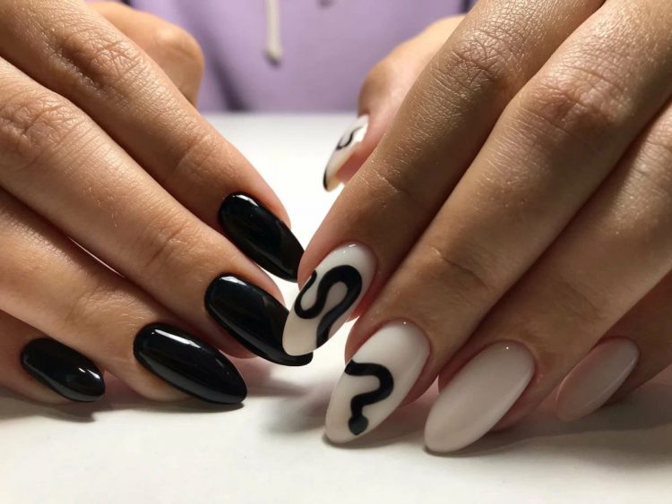 Можна експериментувати з елементами дизайну: змінювати кольори ліній, малюнків або покриття цілого нігтя на різних руках, робити деталі, що перегукуються, і багато іншого.